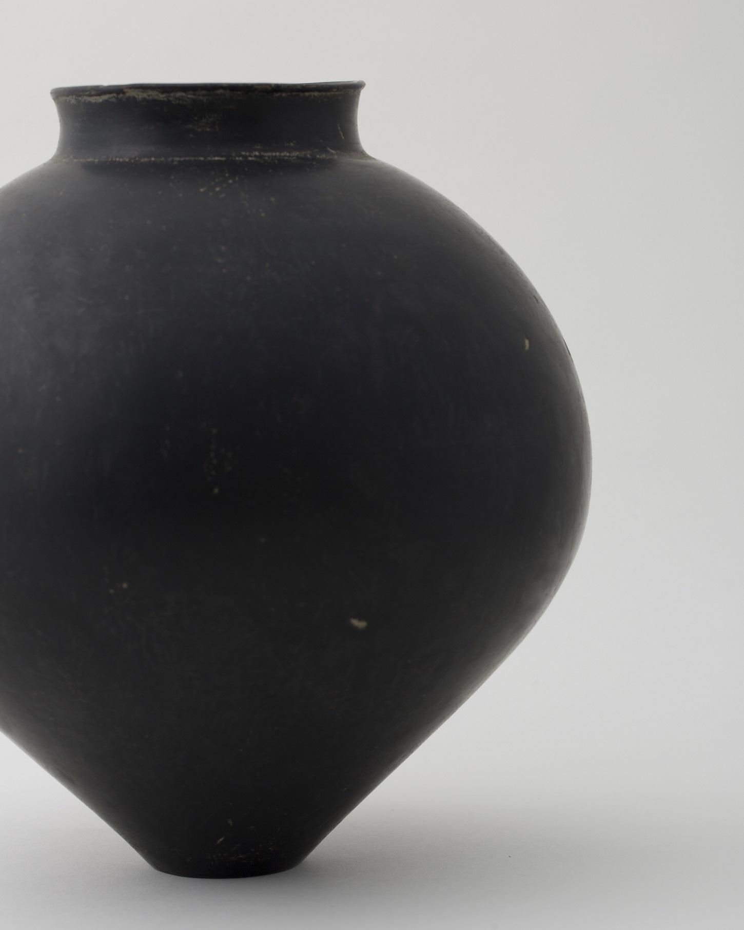 表面に漆を混ぜた黒土を塗り、乾燥後に磨くという作業を10回ほど繰り返し、最後に焼き付けて完成する陶胎漆器。約1ヶ月を要する独自の技法は石のような質感を生み出す。深い黒と美しいフォルムが強さとやわらかさを兼ね備えた作品。